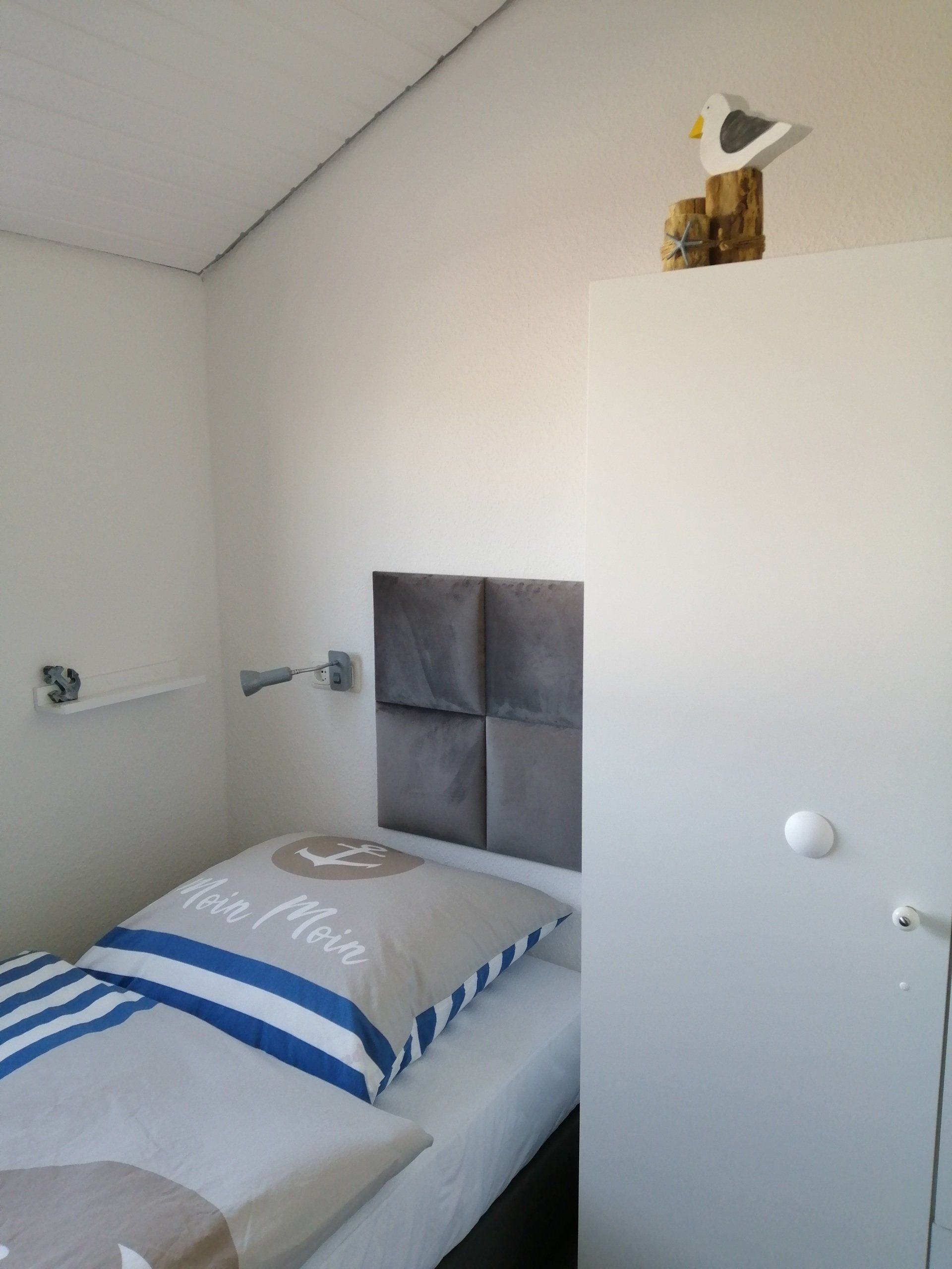 Ein weiteres Schlafzimmer verfügt über zwei Einzelbetten sowie einen Kleiderschrank.
